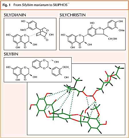 The main constituent silybin has been subjected to several biochemical and pharmacological studies which have demonstrated its interesting properties but also its poor bioavailability. Complexation with soy phosphatidylcholine gives rise to the lipophilic complex5 (US Patent 4, 764, 508) which substantially improves the bioavailibility of silybin. This results in a marked preventive action as observed in several models of liver intoxication including those with a strong involvement of oxidative stress.2