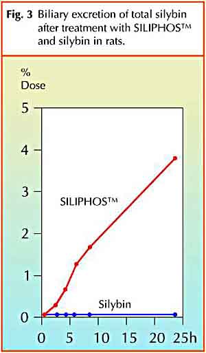In fact, the biliary excretion of uncomplexed silybin was only 0.001% of the administered dose, whereas is was 3.7% for Siliphos.